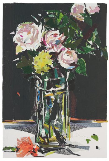 Watercolor and sumi-e ink on cut paper on paper,