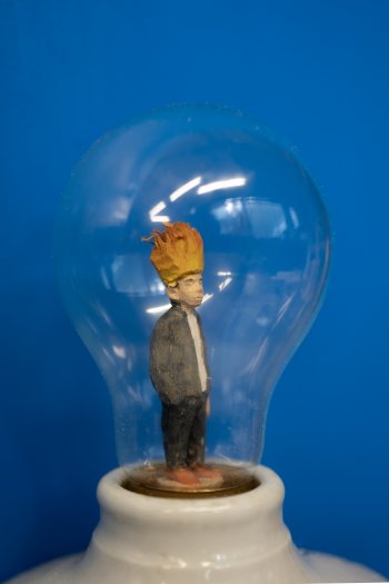 Lindenholz bemalt, Glühbirne, Keramikfassung,