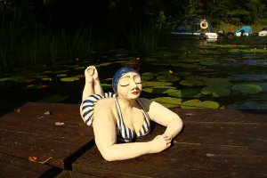 09.04. – 09.05. Mehrfarbiger Holzschnitt - trifft Frauenzimmer. Albrecht Tiedemann, Doreen Krause. Repro Charline , 2024, Ton gebrannt und bemalt, 28 cm