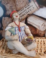 09.04. – 09.05. Mehrfarbiger Holzschnitt - trifft Frauenzimmer. Albrecht Tiedemann, Doreen Krause. Repro Juliette, 2024, Ton gebrannt und handbemalt, Höhe 17 cm Breite 13,5 cm Tiefe 19 cm